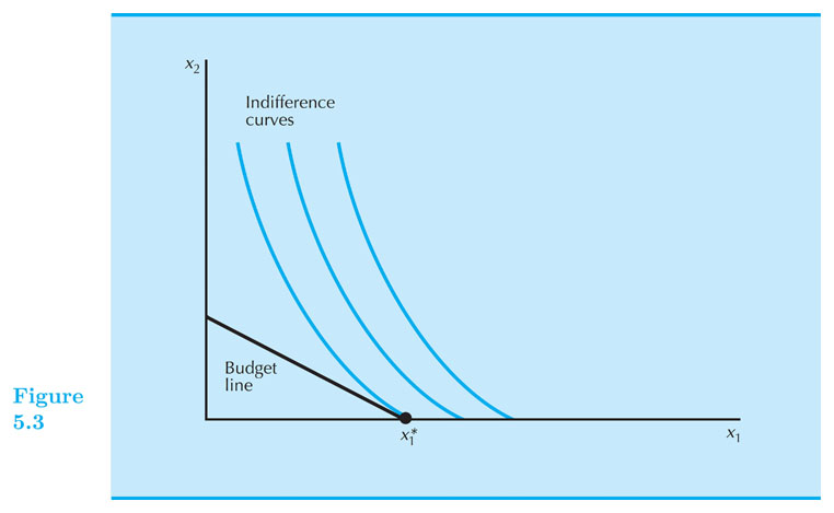 Corner solutions or “boundary optimum”: if $ MRS > \frac{−p_1}{p_2} $ or $ MRS < \frac{−p_1}{p_2} $ always (for example: perfect substitutes)